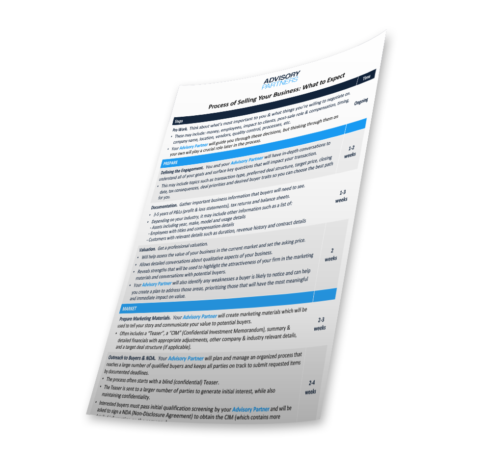 Go through the full process of selling your business and know what to expect when working with a team that cares about your business and the people who made it happen.